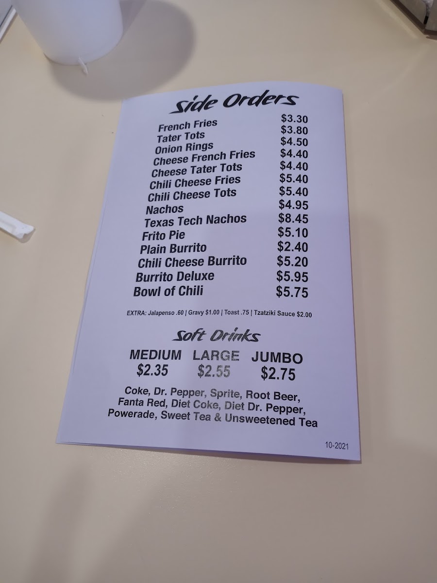 - Hot Dogs: Indulge in foot-long varieties or classic chili cheese dogs, starting at just $2.10.